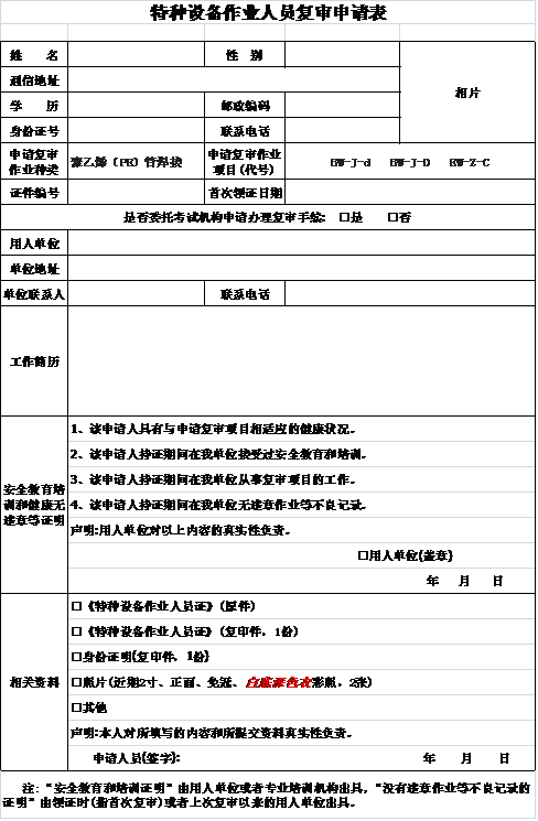 特種設(shè)備焊接操作人員復(fù)審考試申請表