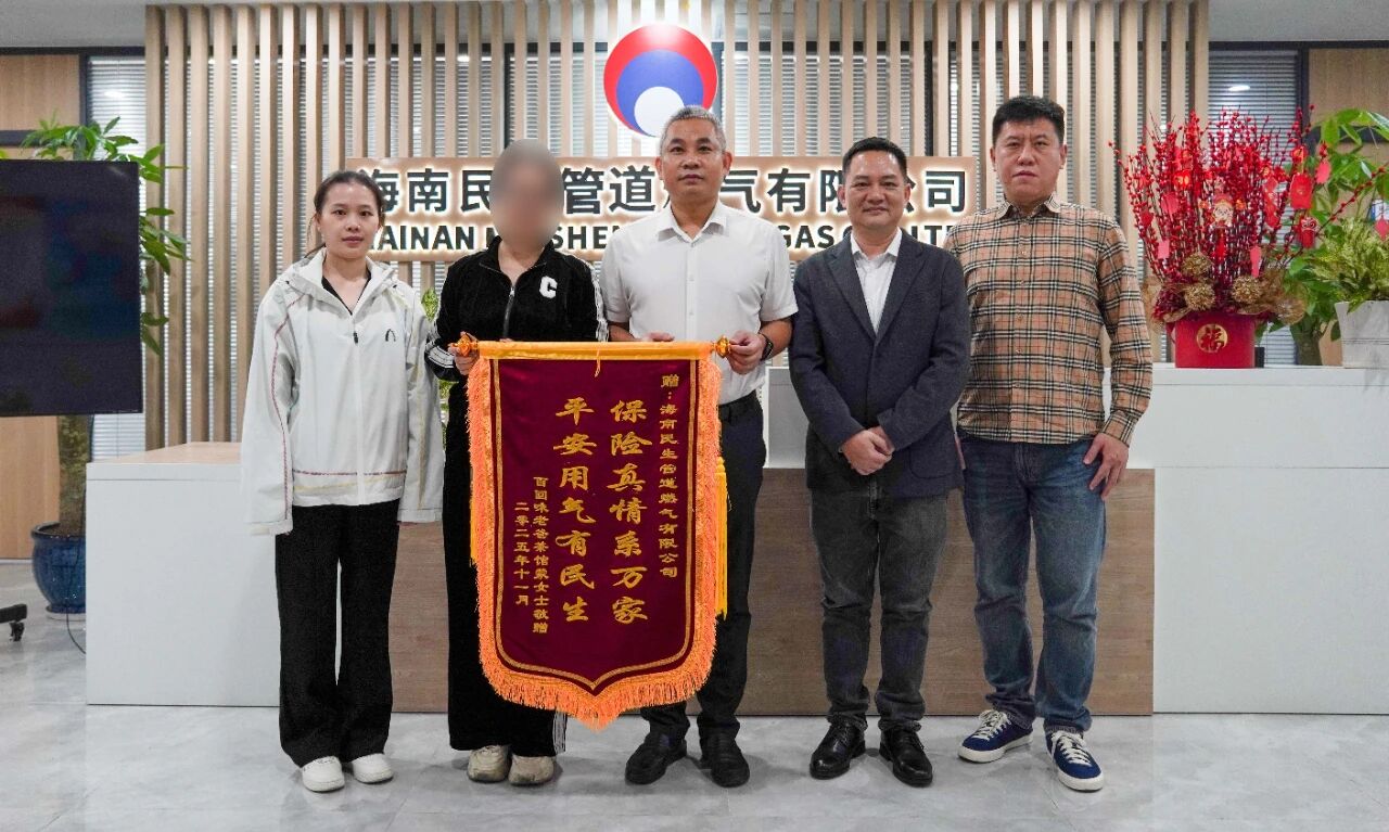 11月14日,??谀巢惋嬌虘艚洜I者蒙女士專程來到海南民生燃氣總部,將一面錦旗送到公司工作人員的手中,感謝海甸服務中心及保險公司工作人員在商戶意外發生火災理賠過程中的暖心相助。